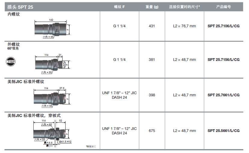 213800/SPT 25.7661/L/CG/冷却和温度控制 SPT25快速接头