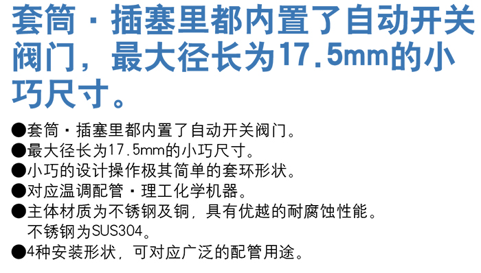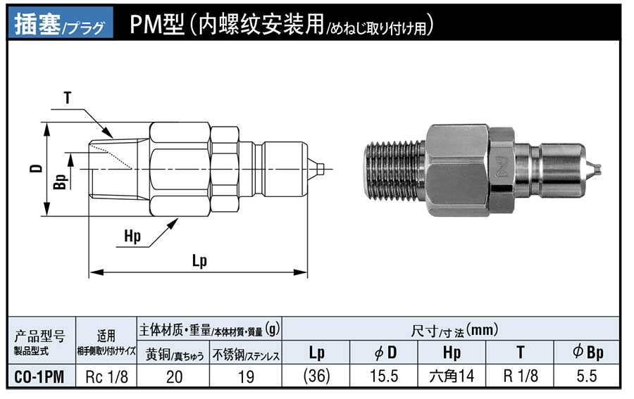 PM 内螺纹安装用小巧型快速接头