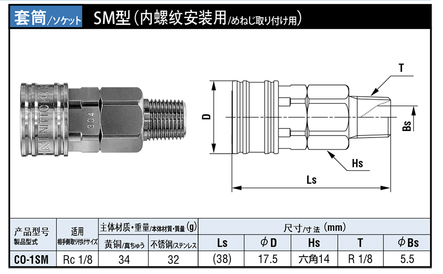 213939/CO-1SM/SM 内螺纹安装用小巧型快速接头