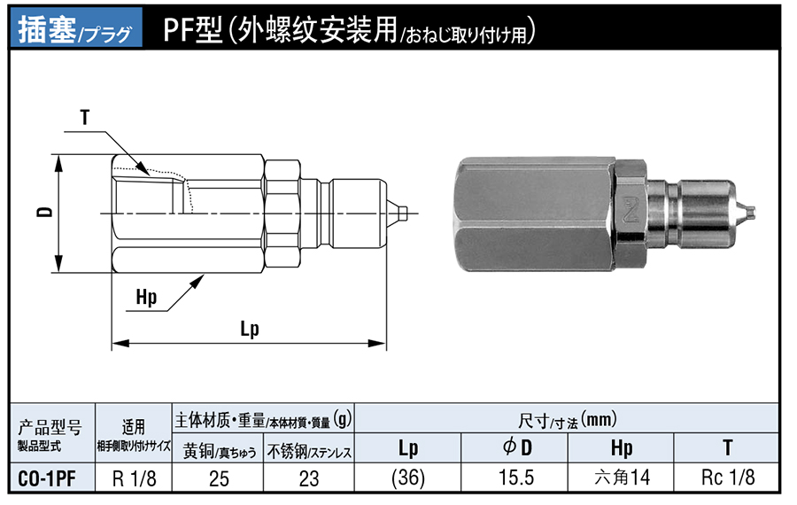 213940/CO-1PF/PF外螺纹安装用小巧型快速接头