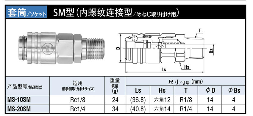 213953/MS-20SM/SM 内螺纹连接型小巧型快速接头