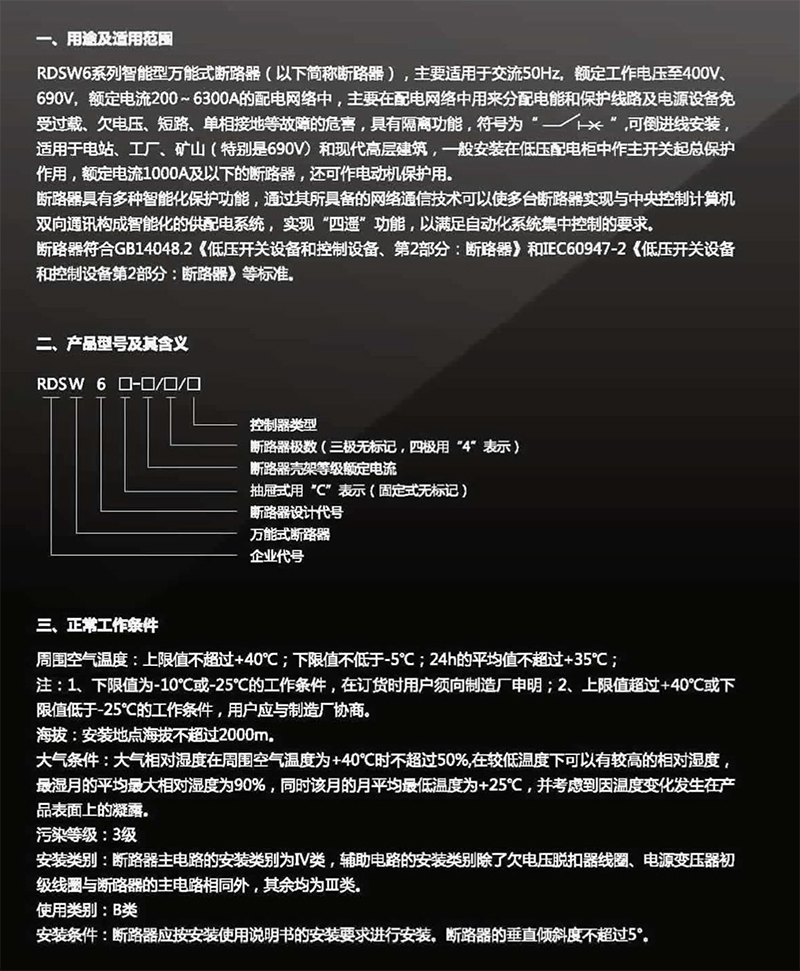 213979/RDSW6C-1000/M/RDSW6智能型万能式断路器