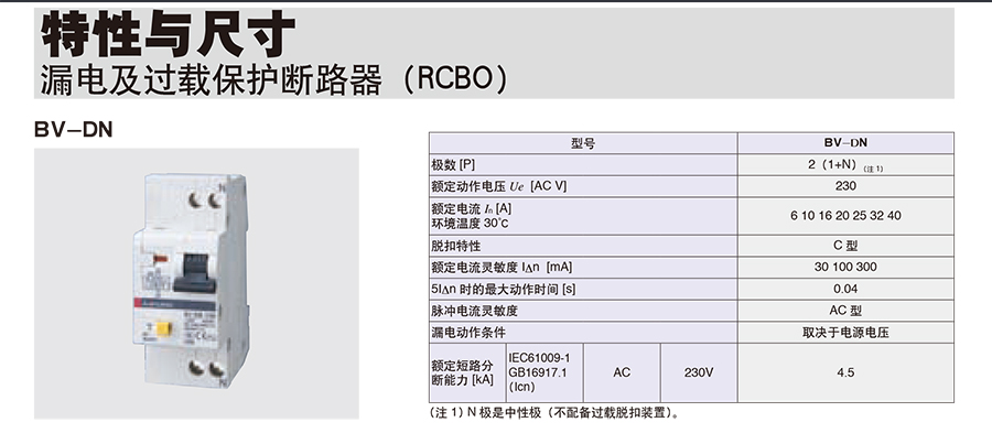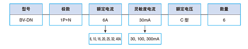 214105/BV-DN/1P+N/6A/30mA/C/RCBO漏电及过载保护断路器