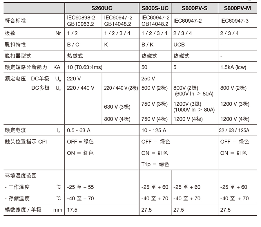 214142/S800S-UC/B/4/10A/S800S-UC高分段微型断路器