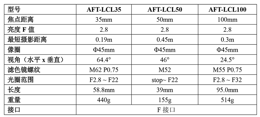 AFT-LCL50工业线阵相机镜头