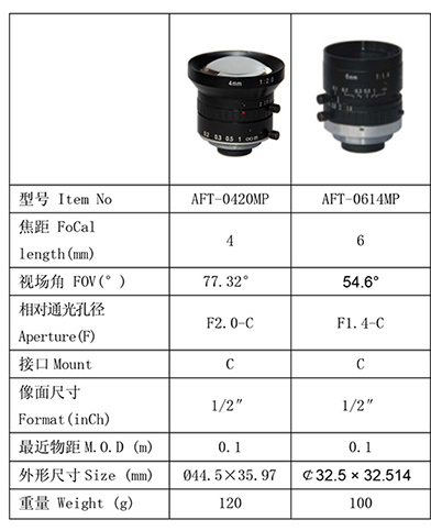 AFT-0614MP百万像素工业镜头