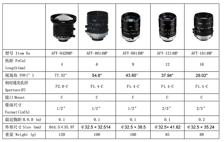 214360/AFT-1614MP/AFT-1614MP百万像素工业镜头