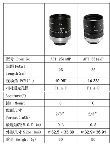 214362/AFT-3514MP/AFT-3514MP百万像素工业镜头