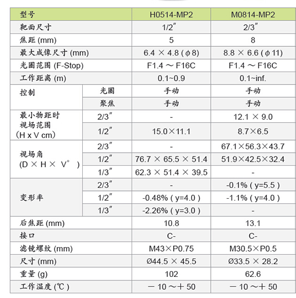 M0814-MP2 COMPUTAR百万像素定焦镜头