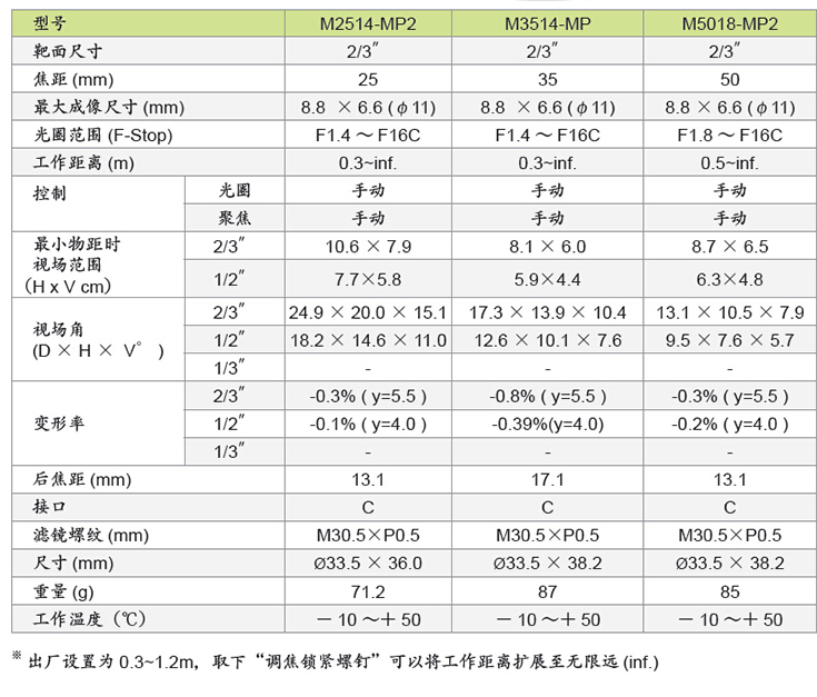 M5018-MP2 COMPUTAR百万像素定焦镜头