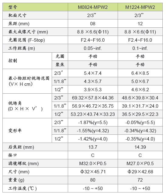 M1224-MPW2 COMPUTAR五百万像素低畸定焦镜头(紧凑型)