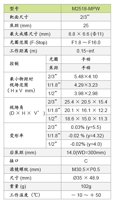 214380/M2518-MPW/M2518-MPW 五百万像素低畸定焦镜头