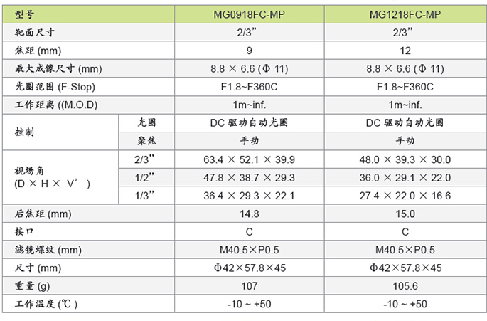 214388/MG1218FC-MP/MG1218FC-MP 5百万像素ITS专用定焦镜头