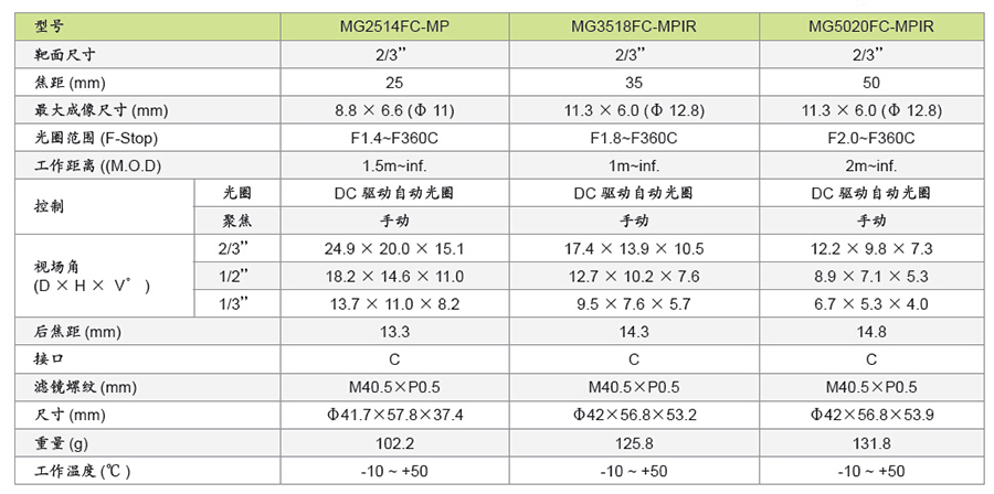 214392/MG5020FC-MPIR/MG5020FC-MPIR 5百万像素ITS专用定焦镜头