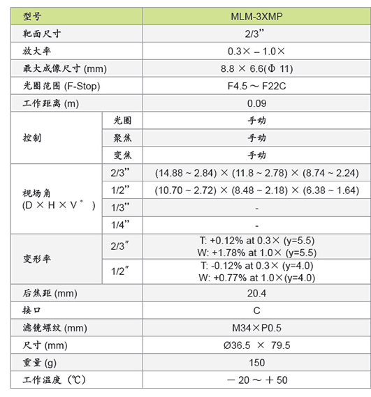 214393/MLM-3XMP/MLM-3XMP 百万像素变倍镜头