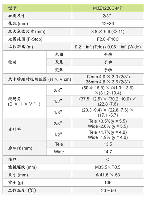 M3Z1228C-MP 百万像素系列变焦镜头