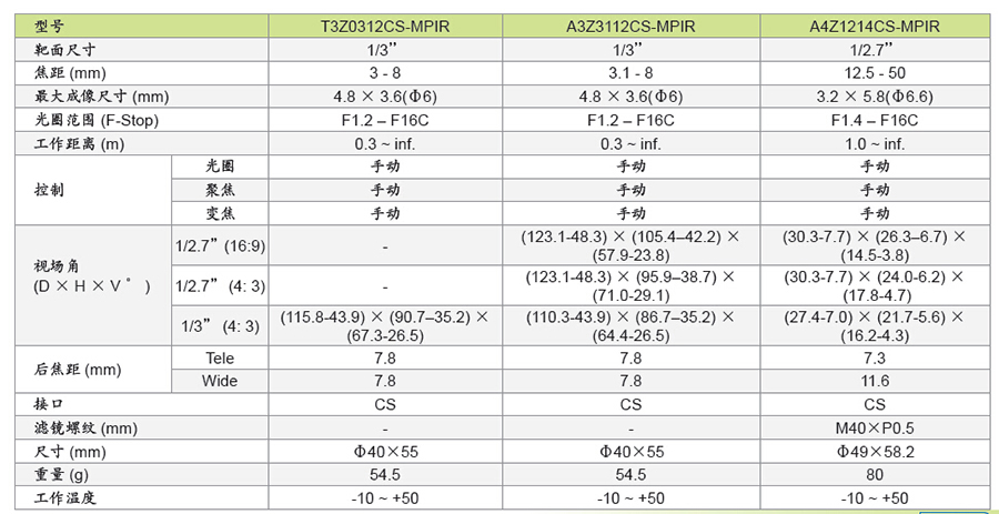 A4Z1214CS-MPIR 百万像素系列变焦镜头