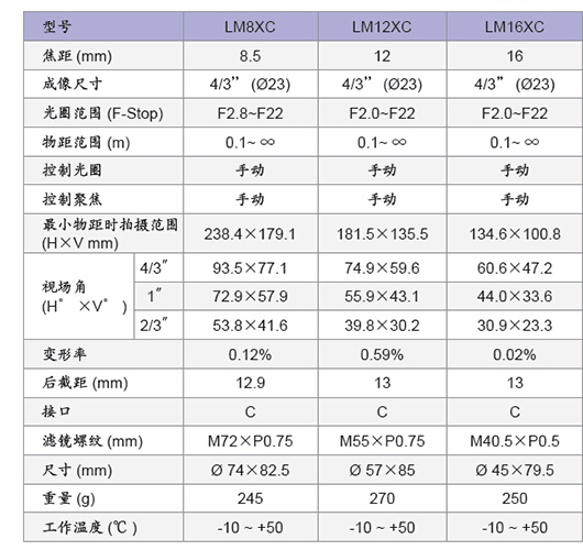 LM16XC 8百万像素定焦镜头