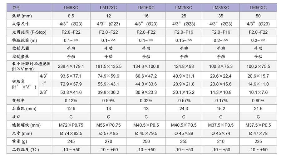 214515/LM50XC/LM50XC 8百万像素定焦镜头