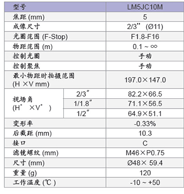 214516/LM5JC10M/LM5JC10M 超高精度千万像素镜头