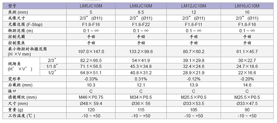 214519/LM16JC10M/LM16JC10M 超高精度千万像素镜头