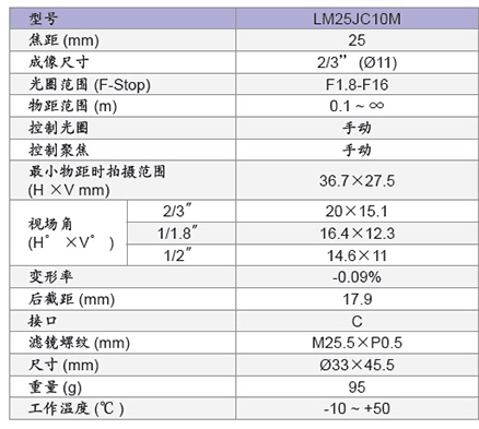 214520/LM25JC10M/LM25JC10M 超高精度千万像素镜头