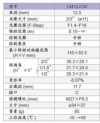 214532/LM12JCM/LM12JCM 百万像素定焦镜头