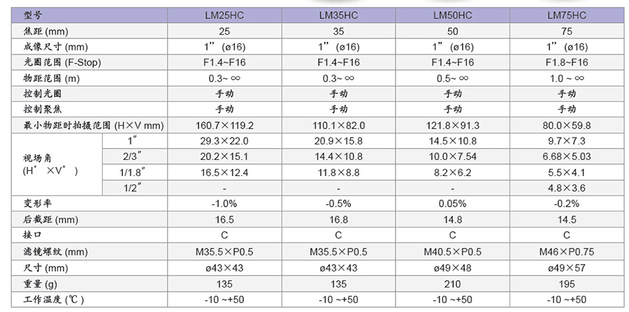 214544/LM75HC/LM75HC 1"百万像素定焦镜头
