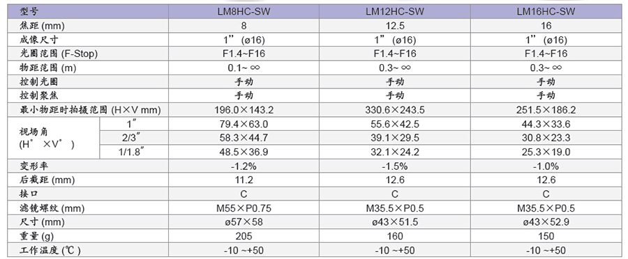 214547/LM16HC-SW/LM16HC-SW 1"百万像素近红外定焦镜头