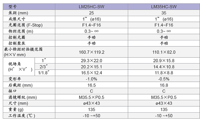 LM50HC 1"百万像素定焦镜头