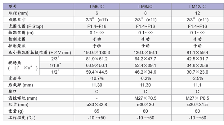 LM12JCM 百万像素定焦镜头