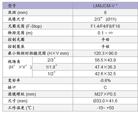 214588/LM8JCM-V/LM8JCM-V 高分辨率FA/MV镜头