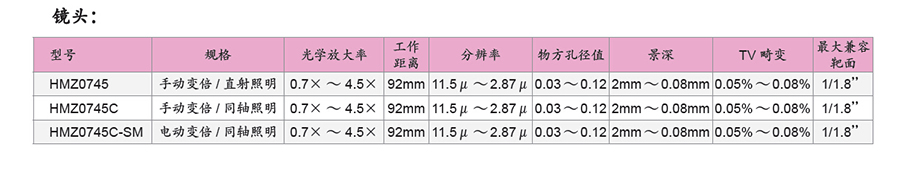 214747/HMZ0745/HMZ高分辨率低微距变倍镜头