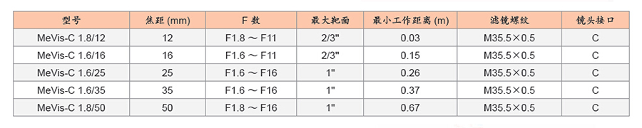 214755/Mevis-C 1.8/12/Mevis-C高分辨率百万像素C接口镜头