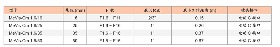 Mevis-CM高分辨率百万像素C接口电动镜头