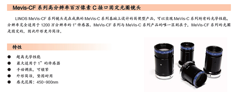 Mevis-CF高分辨率百万像素C接口固定光圈镜头