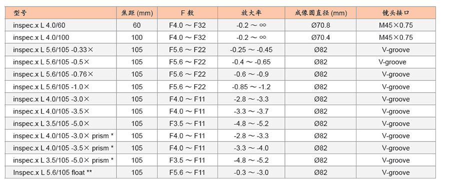 214781/Inspec.xL 5.6/105-0.5X/Inspec.xL线扫面传感器专用镜头