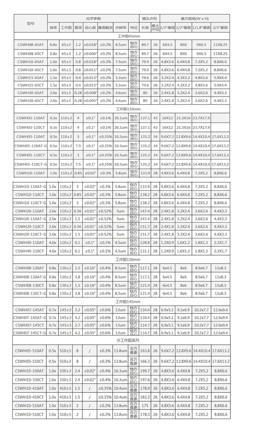 214830/CSWH08-65AT/CSWH系列双远心镜头