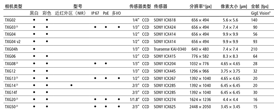 215711/TXG02/TX紧凑型GigE相机