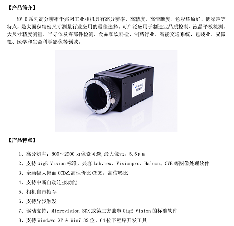 215792/MV-E800C/MV-E系列高分辨千兆网工业相机
