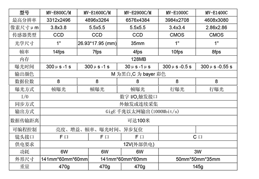 215797/MV-E2900M/MV-E系列高分辨千兆网工业相机