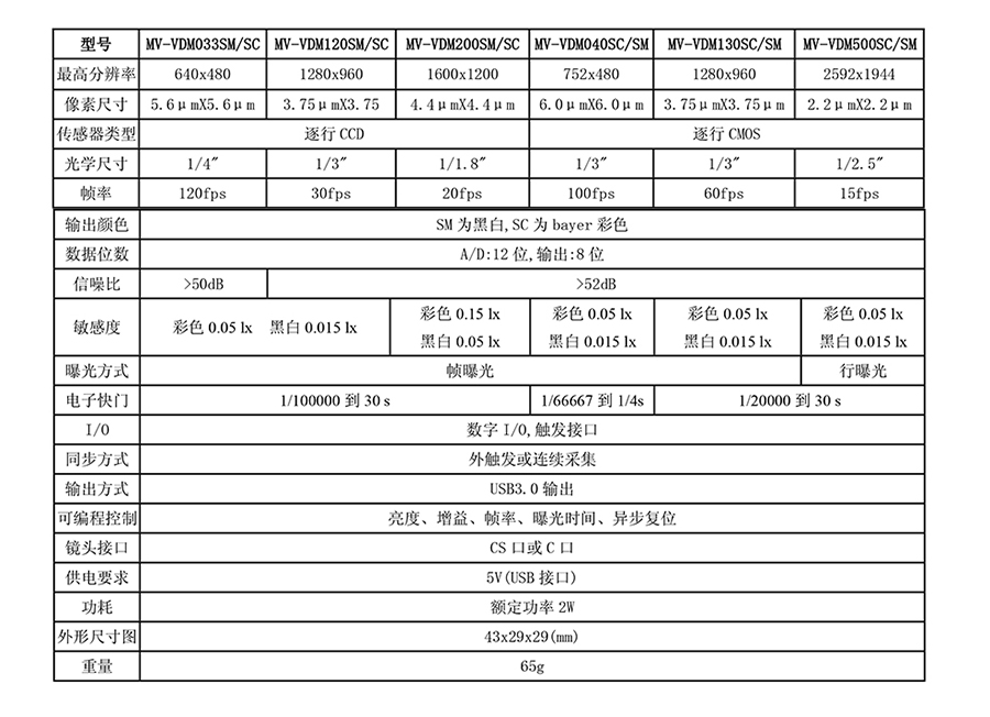 215822/MV-VDM033SC/MV-VDM系列USB3.0接口高速工业数字相机