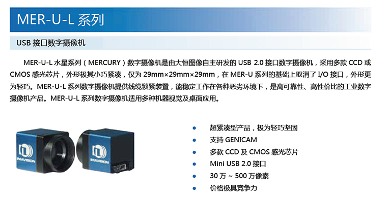 215856/MER-125-30UC-L/MER-U-L系列USB2.0接口数字摄像机