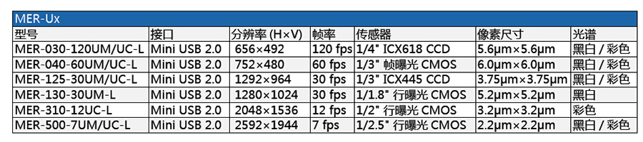 215860/MER-500-7UC-L/MER-U-L系列USB2.0接口数字摄像机