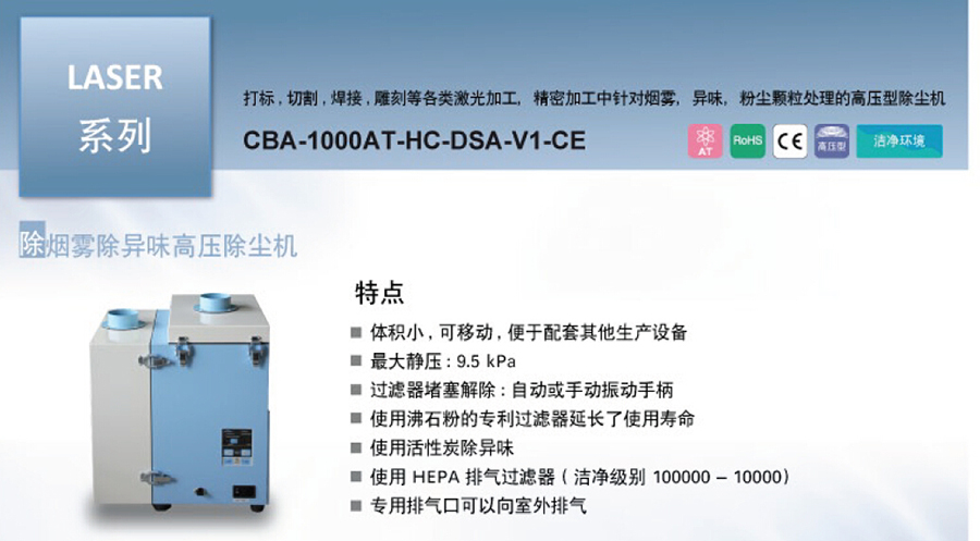 CBA-1000AT-HC-DSA-V1除烟雾除异味除尘机