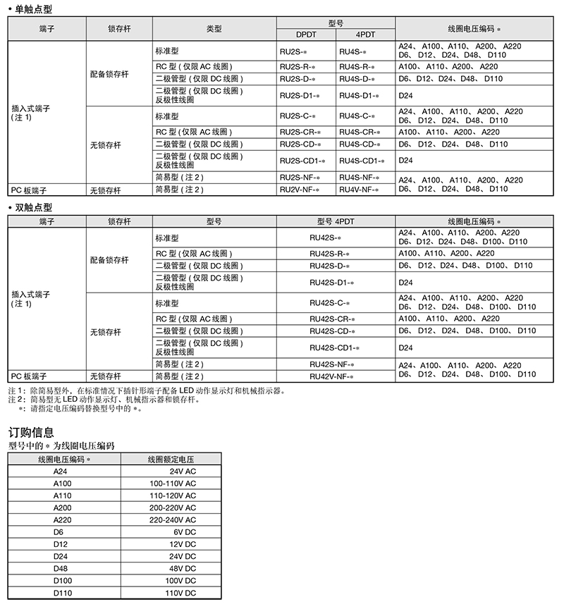 216203/RU4S-R-A100/RU系列通用继电器