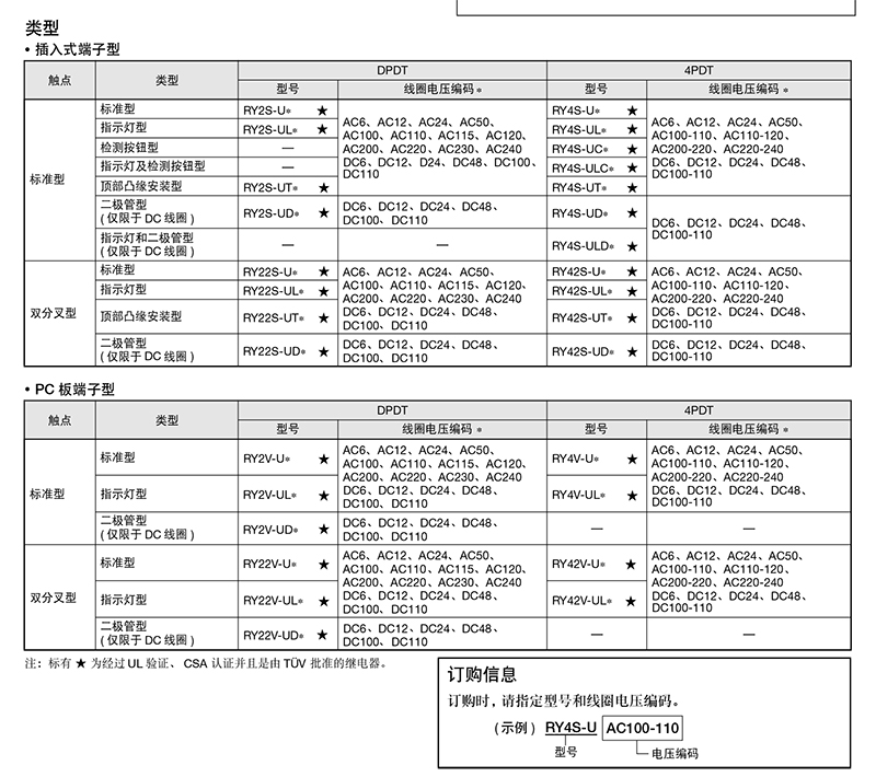 216248/RY4V-UL-AC6/RY系列小型继电器