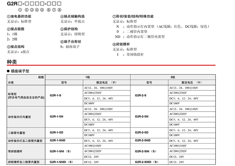 216271/G2R-2-SNI AC100/G2R-□-S微型功率继电器插座端子型