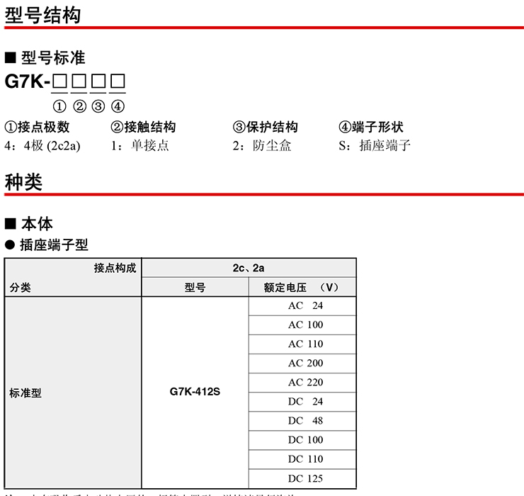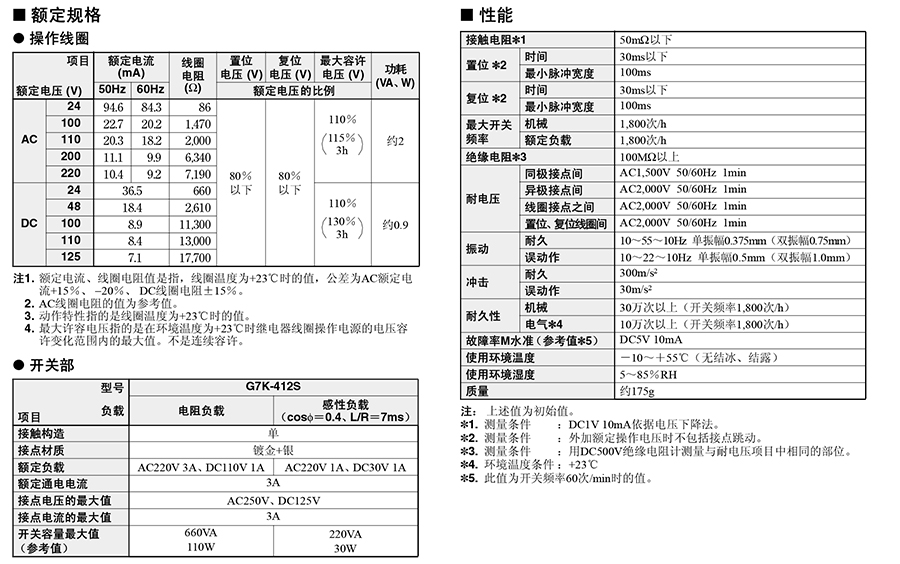 216288/G7K-412S AC110/G7K带手动按钮的小型机械锁定式闭锁型继电器
