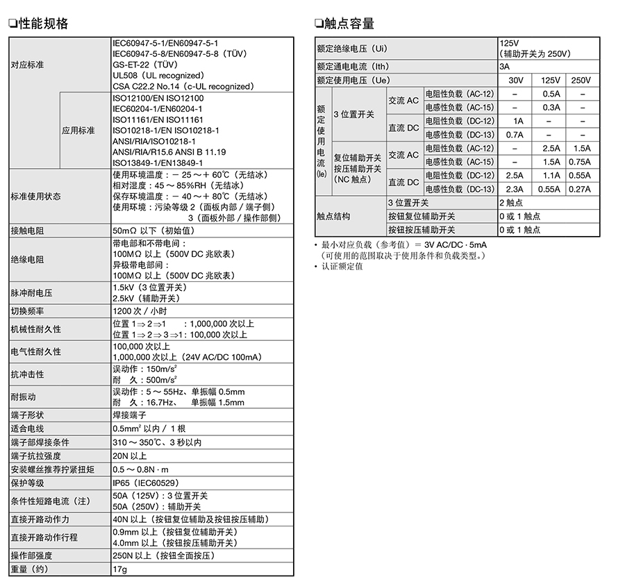 216795/HE6B-M200*/HE6B辅助触点的3位置使能开关